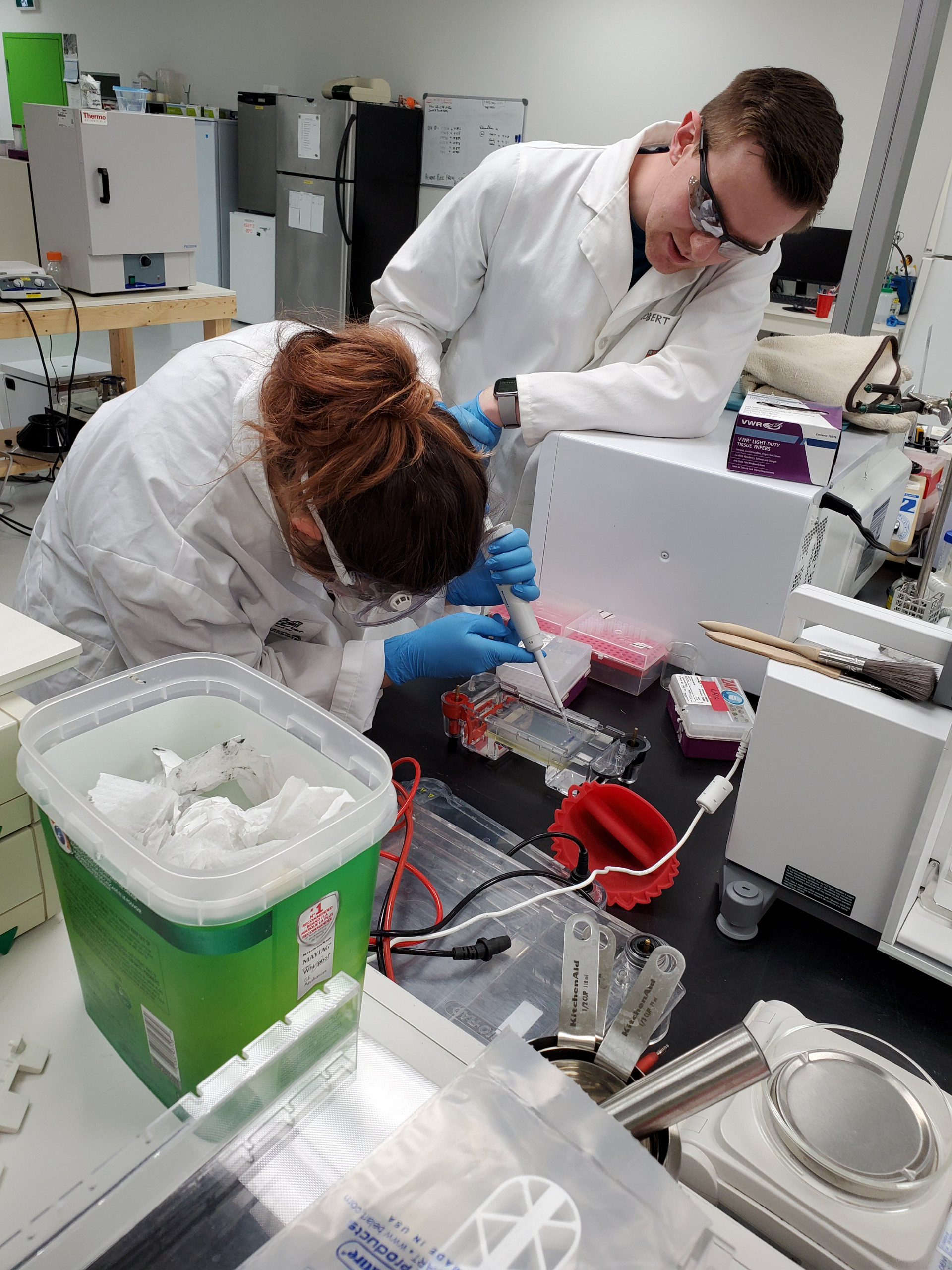 We are done designing all of our DNA constructs (7 planned out so far!) and sending them to be printed in the next week so that we can get to the lab and test them all out. To prepare for this, we spent two evenings at FREDsense labs brushing up on our basic lab skills and planning our goal to go for gold at iGEM.